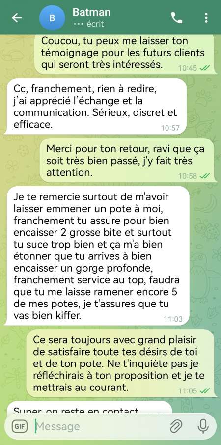 Bonjour tout le monde, je suis créatrice de contenu vidéos et je propose des rdv de plan cul à celui qui achète mon contenue vidéo que vous allez beaucoup adorer. Me contacter uniquement sur Telegram: noemie97424 et je vous montrerais une capture de mon comptepour pouvoir voir toute mes photos.