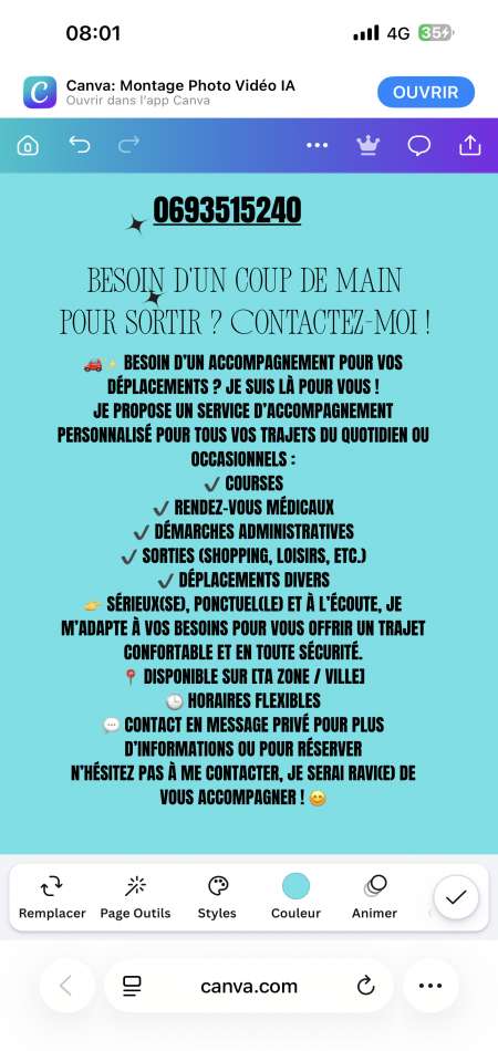 Bonjour je vous propose une petite service pour vous accompagner partout en toute sécurité, je suis un jeune homme de 24ans sociable respectueux et je suis à l écoute