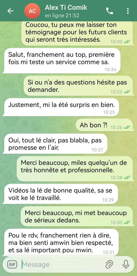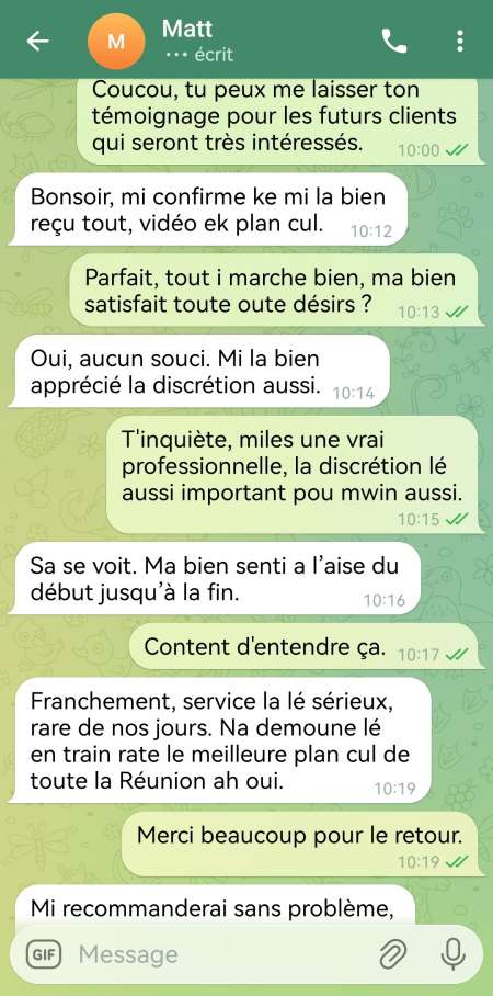 Coucou tout le monde, j'espère que vous allez tous très bien. Je suis créatrice de contenu vidéo et je propose des rdv de plan uniquement aux gens qui achète mon contenue vidéo et il pourra réserver directement son rdv avec moi. Pour plus d'informations et ceux qui sont très intéressés, n'hésitez pas à me contacter uniquement sur Telegram: princesse97 et je vous enverrai une capture de mon compte pour pouvoir voir toute mes photos.